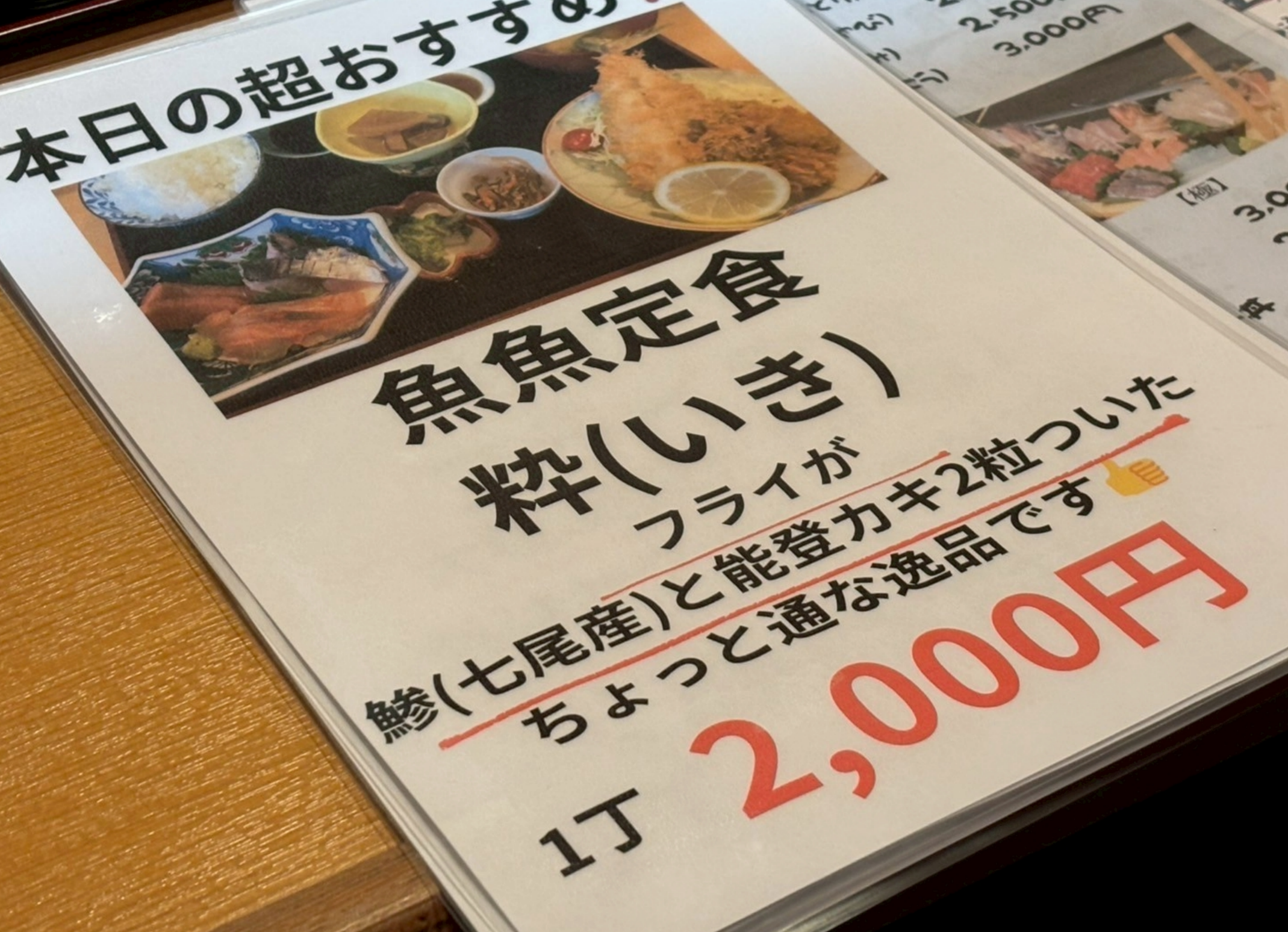 定食は約2,000円前後です。